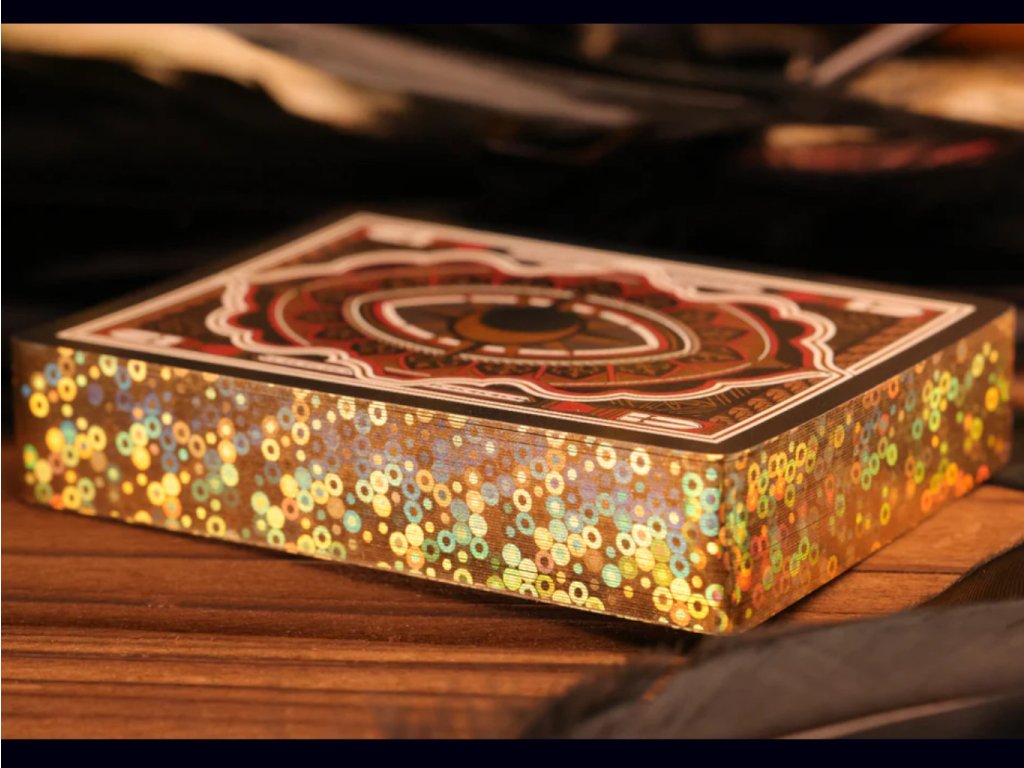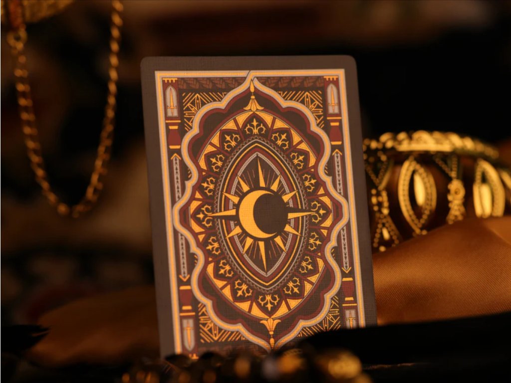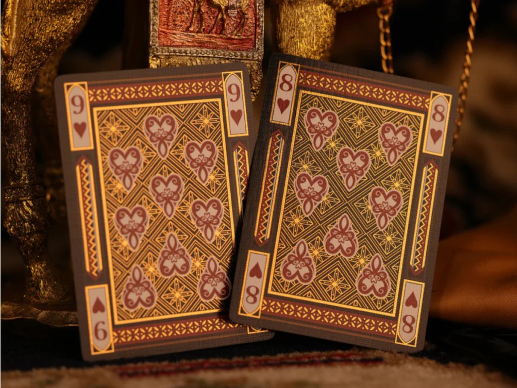 Each pip and swirl reflects a warm and inviting light from its Golden Cold Foil Treatment, evoking the grandeur of Scheherazade’s tales. From ornate calligraphy to rich geometric designs, every detail brings to life the spirit of the Arabian nights.
