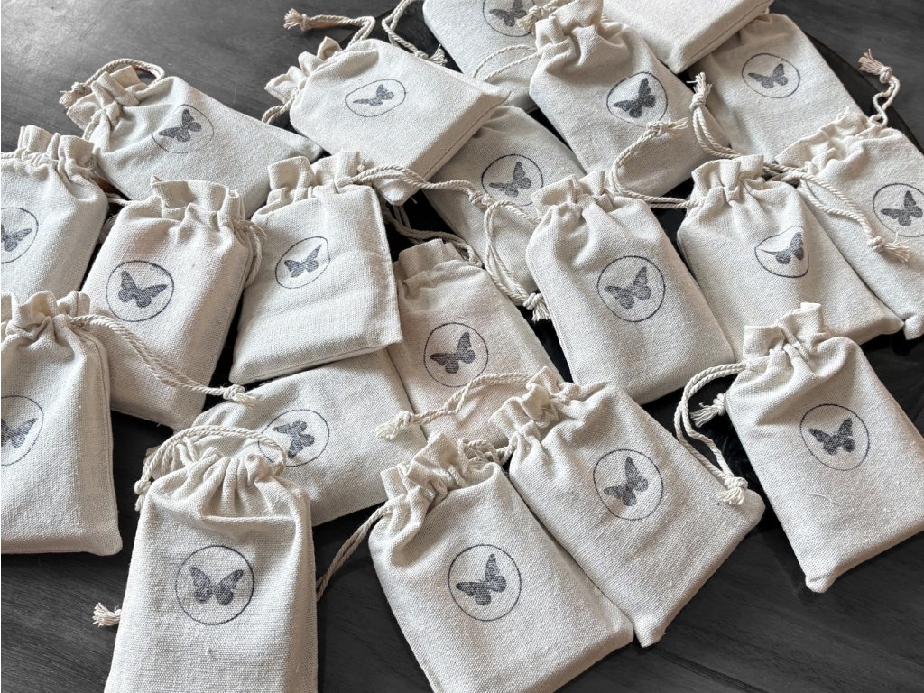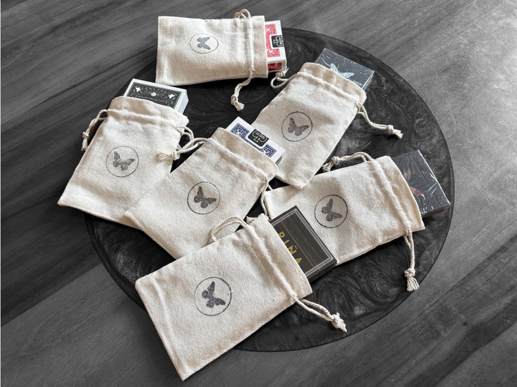 They are housed in smooth linen bags with our Butterfly logo. Each bag includes one deck from our production.