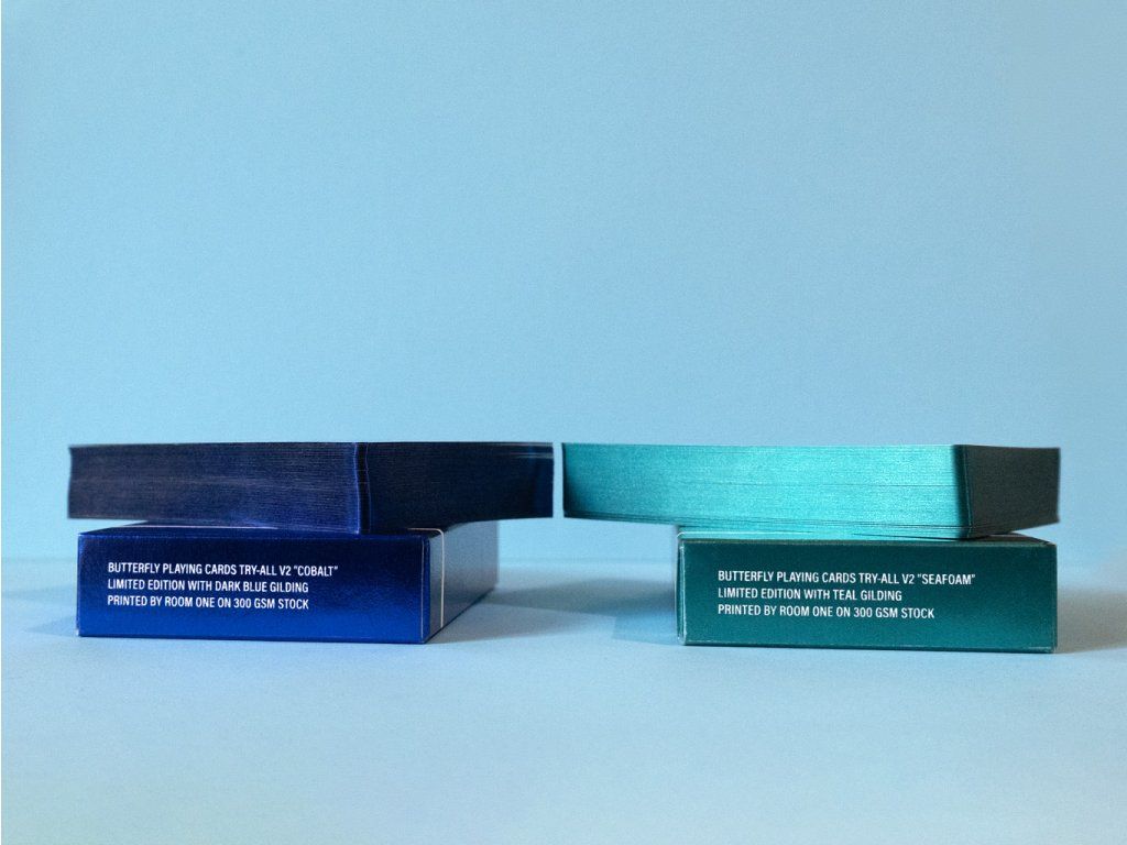 - Butterfly Try-All V2 Playing Cards "Cobalt" - Limited edition with dark blue gilding and matching, fully-foiled tuck box. Only available in this set.
